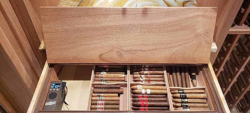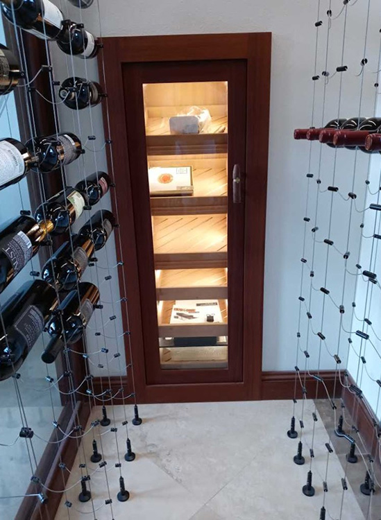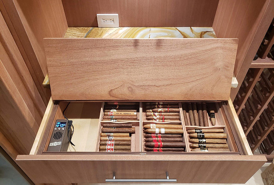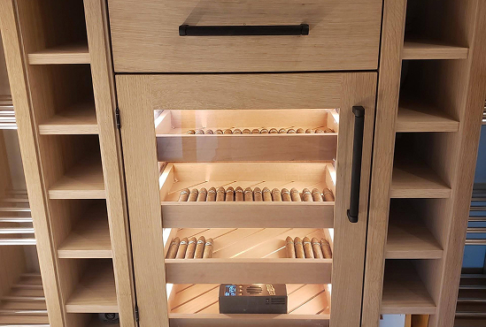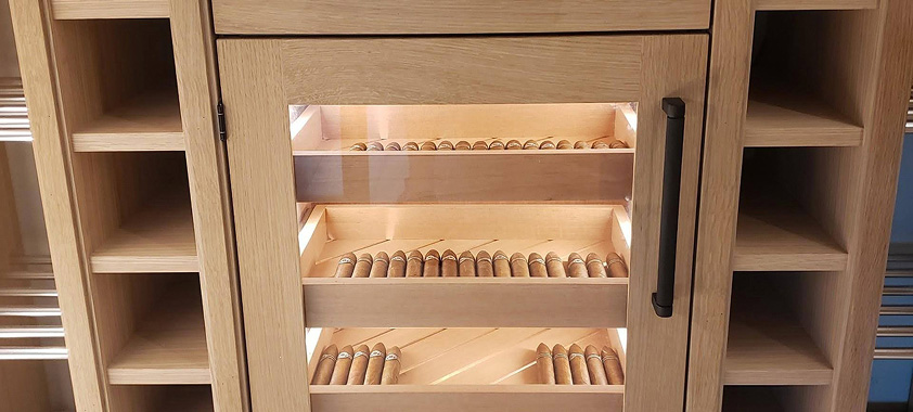 Humidors can be installed as entire room or a small drawer. Installing a humidor area inside a wine room is a special feature that combines both needs. Whether it’s a small or large humidor, we focus on delivering low maintenance and high quality to make having a cigar a pleasure.